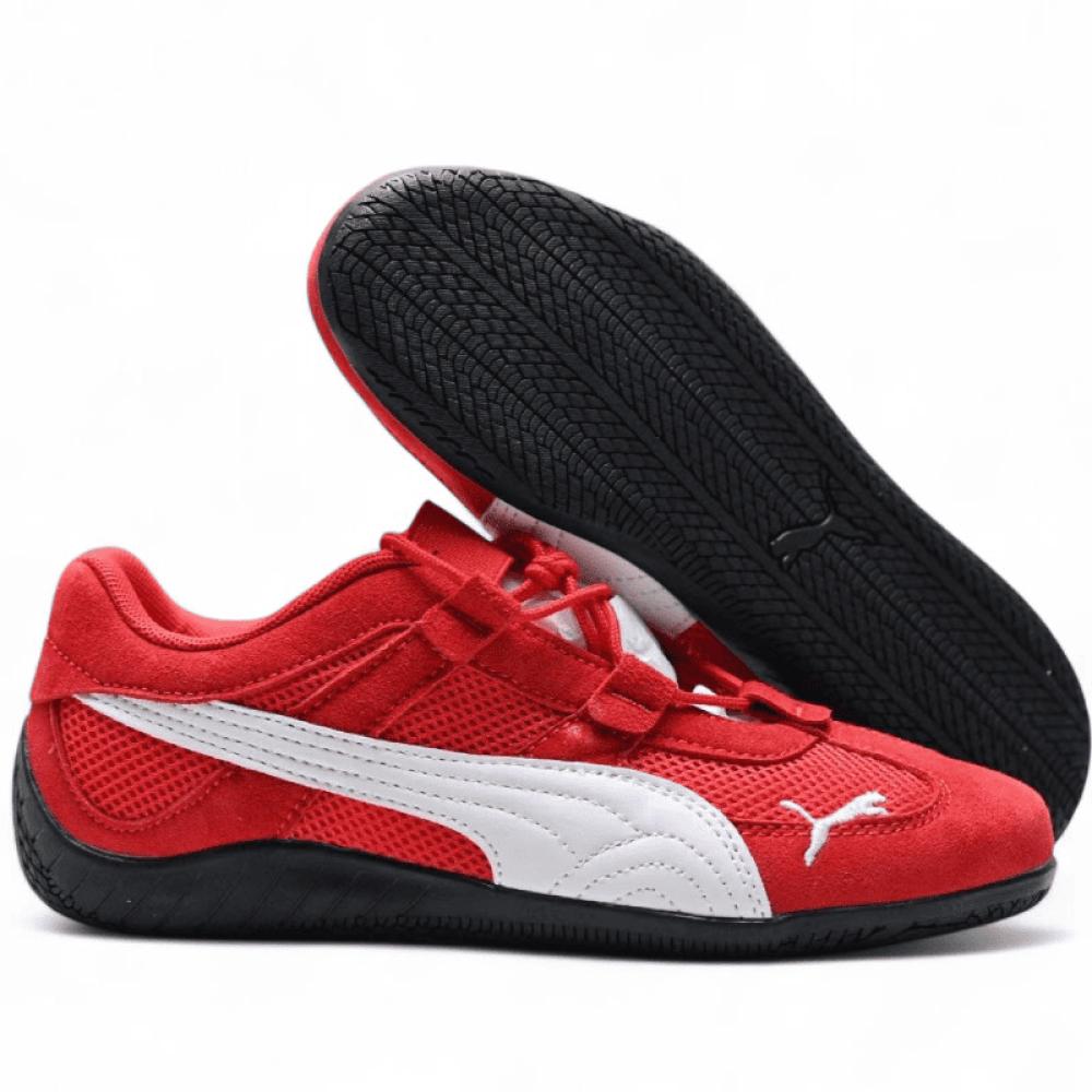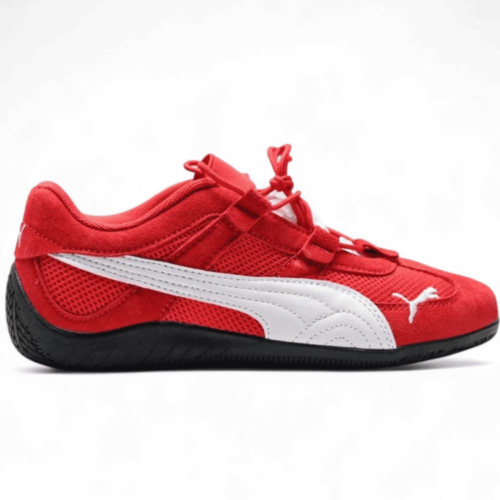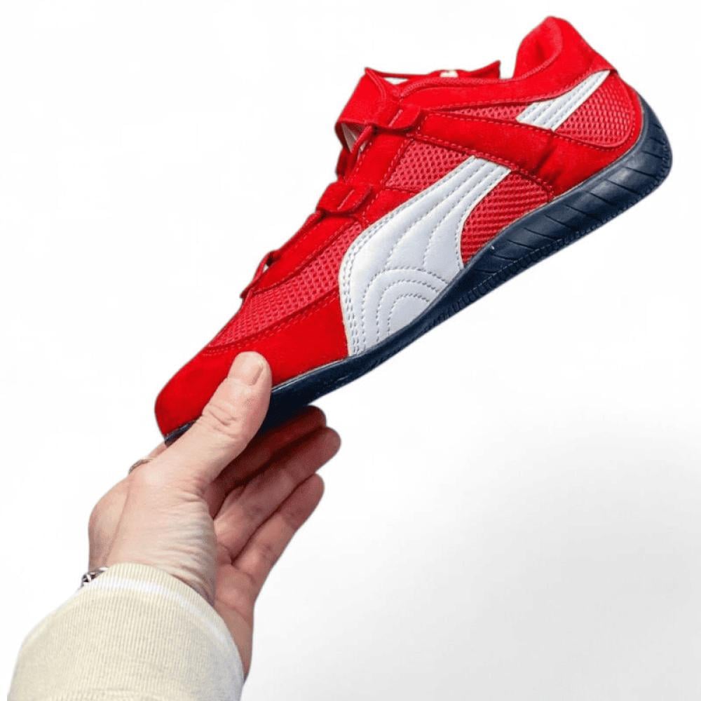 يتميز حذاء سبيد كات Speedcat GO من PUMA بخطوط انسيابية وتصميم ديناميكي يعكس الحداثة والابتكار، مع شعار بوما الأيقوني الذي يضيف لمسة فريدة من التميز.